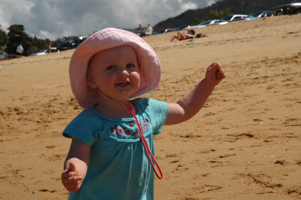 Ok, I'm a little behind, so I'm play quick catchup. Quick change of plan (our travel plans have been very Agile, lots of emerging requirements) and we've gone up towards Able Tasman NP on recommendation of a friend. Didn't quite make it all the way into the park, but did get to an awesome beach town called Kaiteriteri. Beautiful little spot. I kept thinking that I was up at Palm Beach, Sydney or somewhere like that - the sand was similar, and looks like there's some pretty nice mansions on the hillside. The kids had a ball, hence this rather nice pic of Keira (2) - she loves the beach, even when her big brother is throwing sand in her face (that's in the next photo on the reel).
