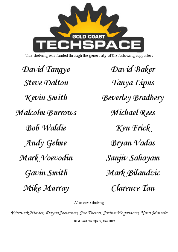 A special thankyou to those from other hackerspaces around Australia that helped us, I am really proud of the way that the hackerspace community has come together recently and it is a great community. Please come and visit us at Gold Coast Techspace - we hope to have a Hackerspace passport stamp soon too.